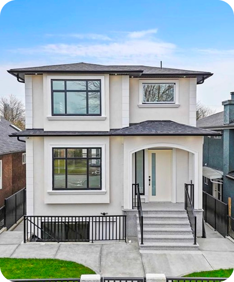 A modern residential form that blends clean massing and large glazed openings with softened traditional elements.