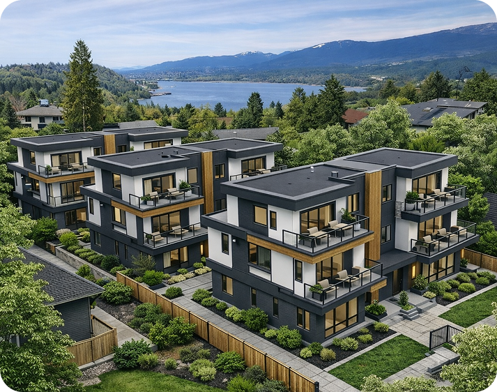 This custom six-unit cottage court reimagines multi-family living through detached-style massing, private terraces,